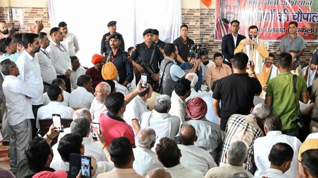 Haryana के मुख्यमंत्री नायब सिंह सैनी ने आज ‘गांव चलो’ अभियान के तहत रामगढ़ की चौपाल का दौरा किया।