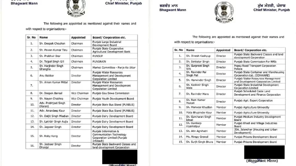 Punjab सरकार ने 2027 विधानसभा चुनावों की तैयारियों की शुरुआत कर दी है। इसी सिलसिले में सोमवार को विभिन्न विभागों, बोर्डों और कॉरपोरेशनों में चेयरमैन, डायरेक्टर और मेंबर के रूप में 31 नए नियुक्तियां की गई हैं। इस संबंध में मुख्यमंत्री कार्यालय द्वारा आधिकारिक आदेश जारी किए गए हैं।